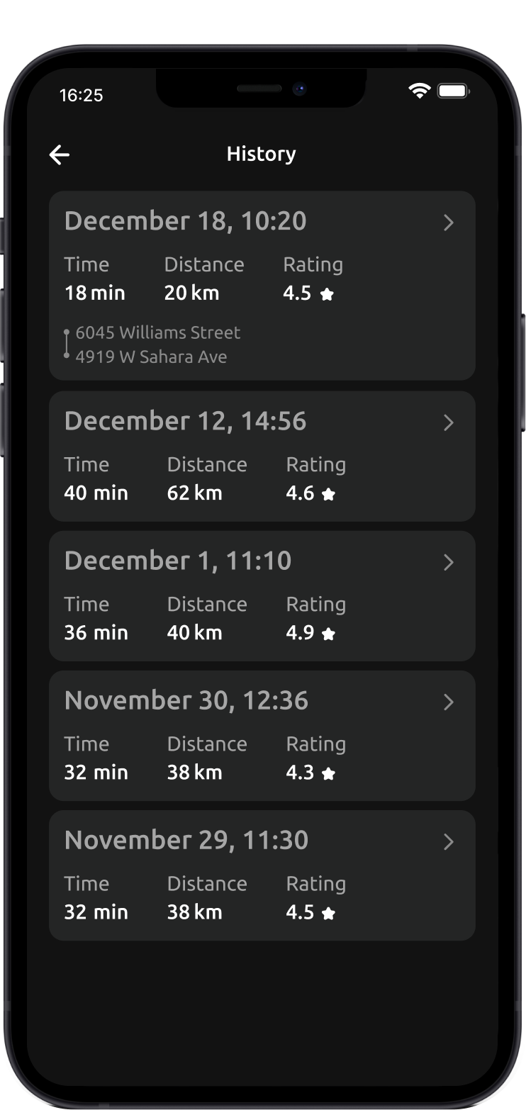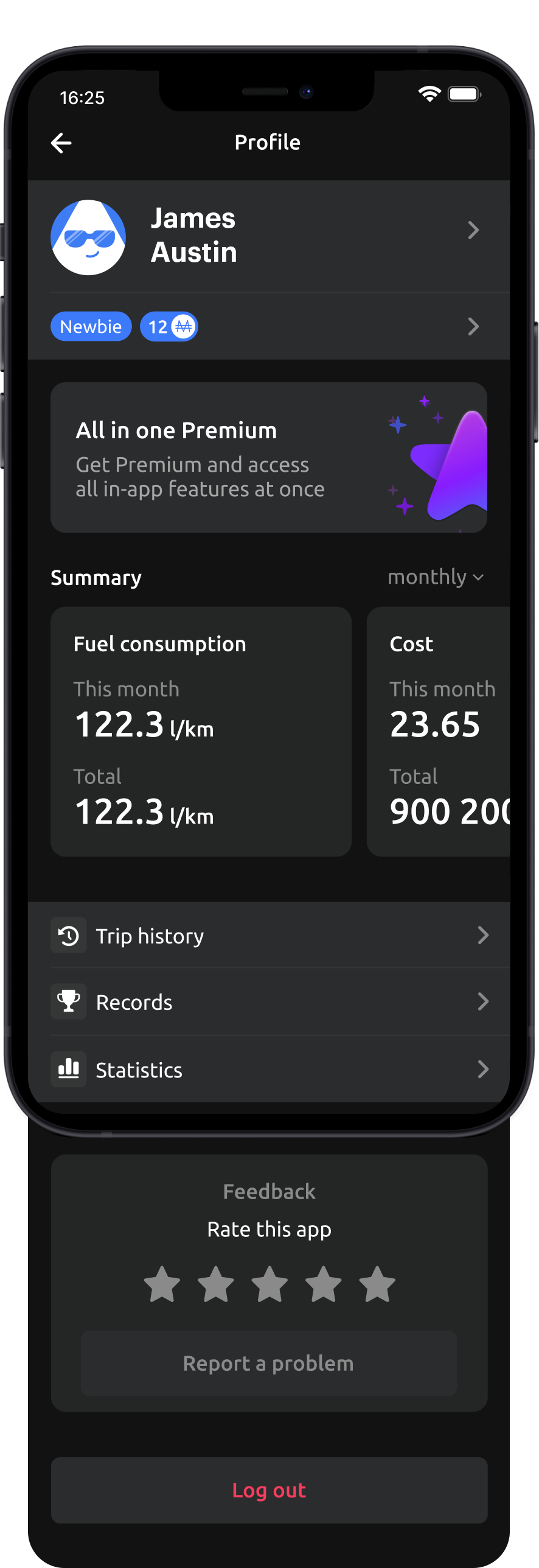 Trip history, statistics, and records are in your user profile. You can check how many bonus miles you have accumulated and how to spend them in the internal store.
